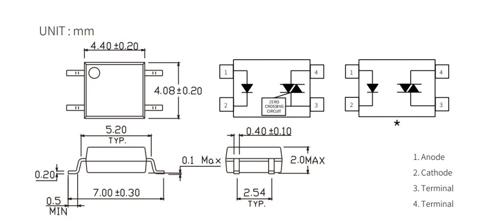 Product Package size(LxWxHmm) VF(V) VDRM(Max) (V) VTM(V) VINH(V) IT (rms)(mA) IFT(mA) Topr (Min) (degC) Topr (Max) (degC) Viso (Vrms)