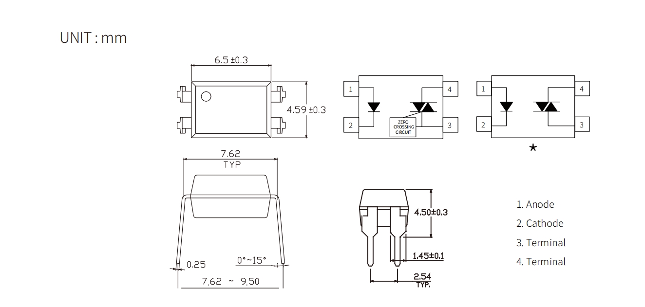 Product Package size(LxWxHmm) VF(V) VDRM(Max) (V) VTM(V) VINH(V) IT (rms)(mA) IFT(mA) Topr (Min) (degC) Topr (Max) (degC) Viso (Vrms)